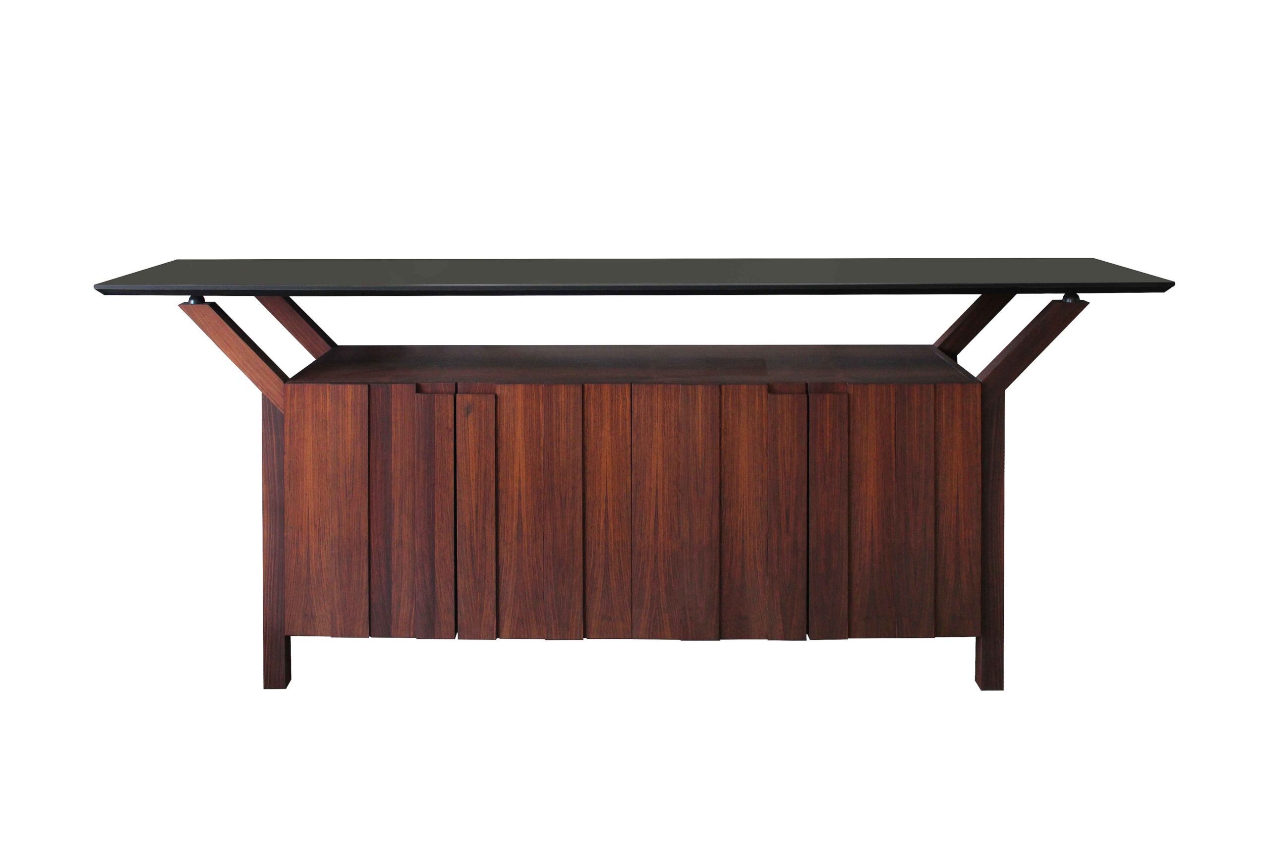 Credenza in legno di olivo e gambe in ebano, maniglie in ottone placcato oro 24ct.
