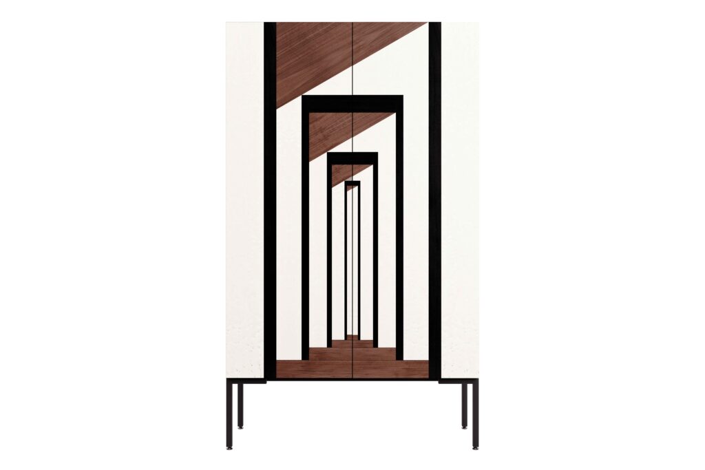 Questo splendido mobile crea dinamismo e un sorprendente effetto prospettico in qualsiasi stanza venga collocato, grazie alla sua silhouette senza tempo e al magnifico pannello frontale intarsiato con quattro diverse essenze: palissandro, ebano, frassino sbiancato e radica di ulivo. L’interno in legno d’acero presenta 24 cassetti foderati con prezioso velluto blu misto a cotone. Un cassetto centrale può essere utilizzato per riporre i gioielli. Senza tempo e sofisticato, questo pezzo sarà un’aggiunta sorprendente a qualsiasi arredamento.
